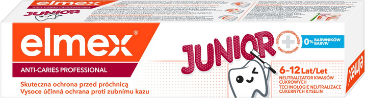 Děti, které používají dětskou zubní pastu elmex® Anti-Caries Professional Junior, pomáhají svým zubům, aby zůstaly zdravé. Tato zubní pasta pro děti je založena na technologii neutralizace cukerných kyselin, které způsobují zubní kaz. Technologie neutralizace cukerných kyselin s obsahem argininu, vápníku a fluoridu podporuje remineralizaci zubů. Více informací