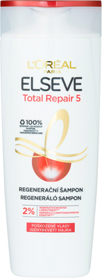L'Oréal Paris Elseve Totail Repair 5 šampon 400 mlVše o produktuDoplňující informaceHodnocení produktuVlivem času a vnějších dráždivých faktorů se poškozuje přirozená bariéra vlasu. Vlasy se ztenčují, slábnou, jsou ploché, drsné a mdlé. Regenerační šampon L’Oréal Paris Elseve Total Repair 5 obnovuje krásu vlasů.