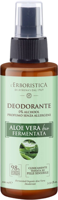 Deodorant Erboristica neobsahuje alkohol ani hydrochlorid hliníku. Ošetřuje pokožku s ohleduplnou jemností. Dodává pocit svěžesti, úlevy a komfortu. Aplikuje se bez použití plynu. Aplikováním technologie hyperfermentace získává aloe vera bezpočet zesílených kosmetických vlastností. Fermentace je přírodní posilovač, který přeměňuje jednotlivé ingredience na mocné nutrienty.