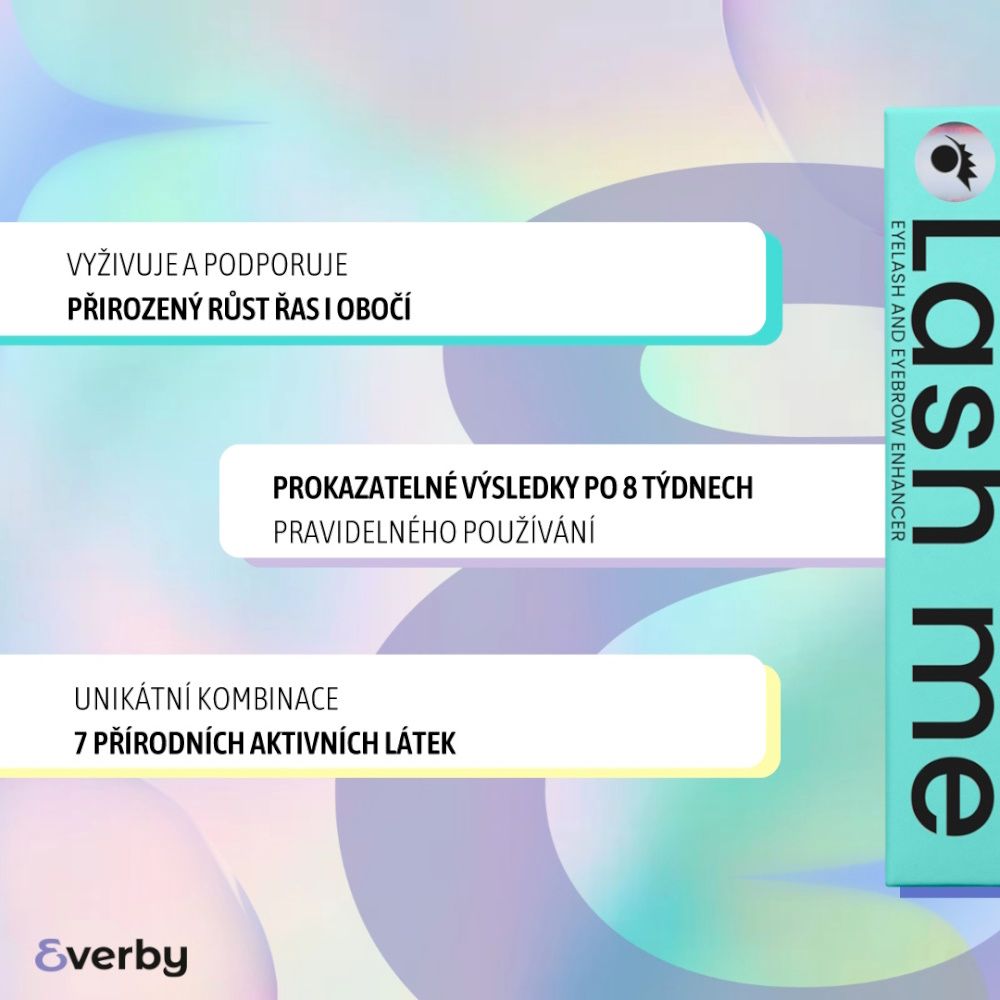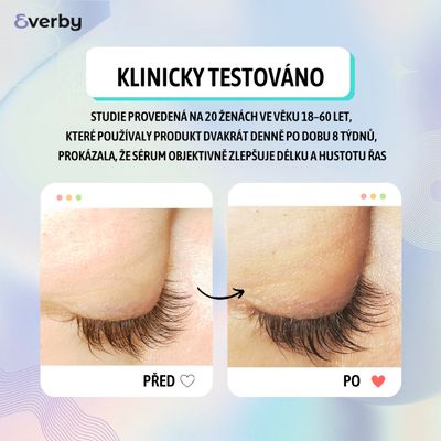 Everby Lash Me Sérum posiluje a stimuluje růst řas i obočí. Viditelné výsledky za 8 týdnů, delší, hustší a silnější řasy díky 7 aktivním látkám včetně peptidů a kyseliny hyaluronové. Více informací