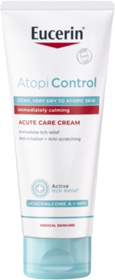 Eucerin AtopiControl Acute krém byl vyvinut speciálně tak, aby poskytoval úlevu a intenzivní péči pokožce během akutního vzplanutí atopické dermatitidy. Krém obsahuje jedinečný komplex aktivních složek-uklidňující Licochalcon A, antibakteriální dekandiol a menthoxypropanediol (MPD) ulevující od svědění díky chladivému účinku. Tento komplex, v kombinaci s vysokou koncentrací ceramidů, posiluje kožní bariéru, zmírňuje suchost a ulevuje od svědění na smyslové úrovni, čímž snižuje nutkání škrábat pokožku. Více informací