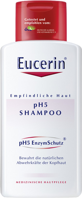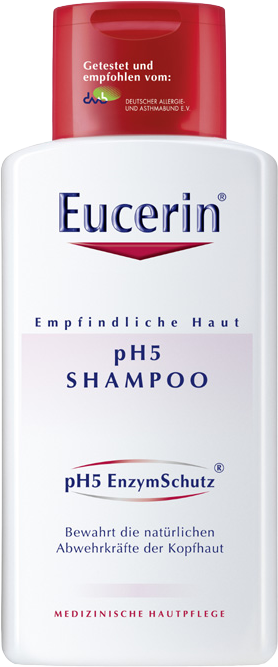 Zdravá pokožka má pH 4,5 až 5,5, je tedy mírně kyselá. Tato přirozená kyselost chrání pokožku před škodlivými bakteriemi a negativními látkami, takže pokud je tato rovnováha narušena – například horkem, chladem, nemocí, nevhodnými kosmetickými přípravky nebo v důsledku stresu – může být výsledkem citlivá pokožka hlavy. Eucerin DermoCapillaire pH5 vlasový šampon pro citlivou pokožku byl speciálně vyvinut tak, aby udržoval přirozenou hodnotu pH pokožky a účinně čistil vlasy a pokožku hlavy, aniž by ji vysušoval nebo dráždil. Zbavuje vlasy také nečistot, pylů a alergenů a dodává jim zdravý lesk, hebkost a pružnost.