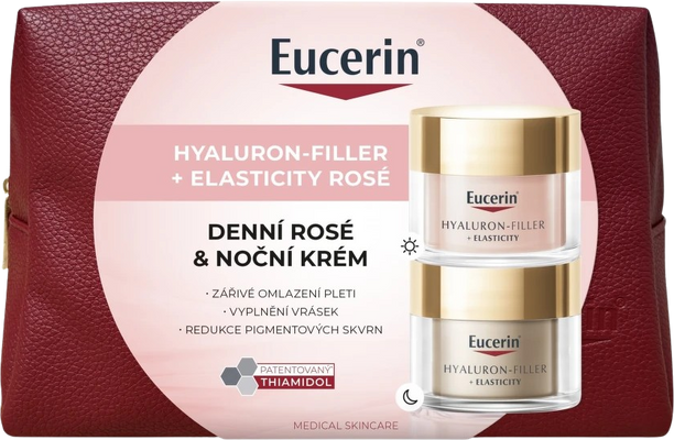 Elegantní sada Eucerin Hyaluron-Filler + Elasticity Rosé obsahuje denní tónovací krém s SPF 30 a noční regenerační krém, ideální pro zralou pleť. Jemně tónovaná textura denního krému okamžitě rozzáří pleť, sjednocuje její tón a zároveň působí proti známkám stárnutí. Více informací
