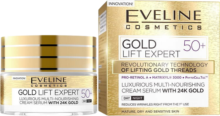 Eveline Gold Lift Expert Day & Night cream 50+ 50 mlVše o produktuDoplňující informaceHodnocení produktuVlastnosti
