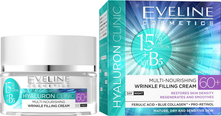 Eveline Hyaluron Clinic Day and Night cream 60+ 50 mlVše o produktuDoplňující informaceHodnocení produktuVlastnosti