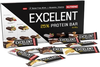 Nová proteinová tyčinka EXCELENT obsahuje vyvážený poměr živin, BCAA, L-glutamin a je obohacena o vitamíny. V jedné tyčince je více než 21 gramů bílkovin, nová receptura je zcela bez trans tuků a bez lepku!