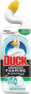 WC gel DUCK Power Pine zanechá vaši toaletu hygienicky čistou a svěží. Pěnivý bělící gel kombinuje dezinfekční výhody bělícího a čistícího účinku pěny v jednom. Zatímco bělidlo dezinfikuje a rozjasňuje toaletu, silná pěna precizně odstraní nečistoty, usazeniny i skryté mikroorganismy. WC gel DUCK Power Pine s vůní borovice udrží vaši toaletu čistou a svěží. Více informací