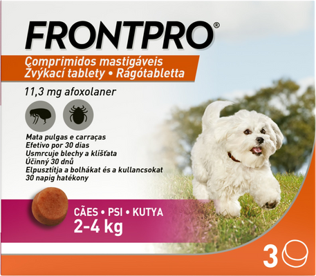 FRONTPRO® je bezpečné a účinné u nejrůznějších plemen psů (včetně kólií). Může být podáváno štěňatům od 8 týdnů věku, pokud váží alespoň 2 kg.