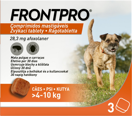 FRONTPRO® je bezpečné a účinné u nejrůznějších plemen psů (včetně kólií). Může být podáváno štěňatům od 8 týdnů věku, pokud váží alespoň 2 kg.