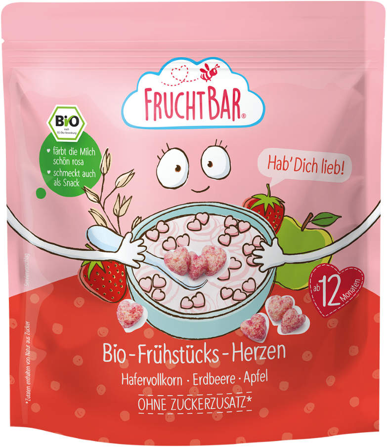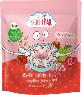 Od kdy můžete dát dětem cereálie? FruchtBar srdíčka s jahodami a hroznovým vínem jsou určené pro děti již od ukončeného 12. měsíce. Nepřidává se žádný cukr, přesto chutnají příjemně sladce díky koncentrované jablečné šťávě. Doplňte je mlékem či jogurtem a čerstvým ovocem a máte během chvilky zdravou snídani či svačinu.