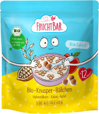 Od kdy můžete dát dětem cereálie? Kakaové kuličky od FruchtBar jsou určené pro děti již od ukončeného 12. měsíce. Nepřidává se žádný cukr, přesto chutnají příjemně sladce díky koncentrované jablečné šťávě. Doplňte je mlékem či jogurtem a čerstvým ovocem a máte během chvilky zdravou snídani či svačinu.