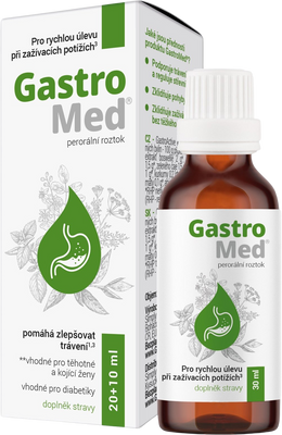 GastroMed® obsahuje unikátní GastroActive komplex – kombinaci 8 tradičních bylin, které příznivě působí na zažívací trakt, zklidňují a podporují jeho správnou činnost a funkce.