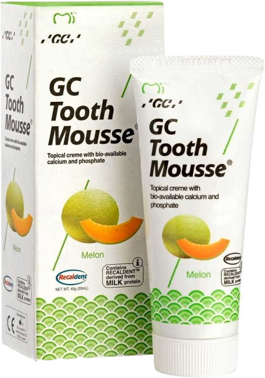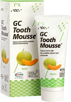Bioaktivní dentální krém (pěna) GC Tooth Mousse s obsahem RECALDENT™ dodává vysokou koncentraci vápníku a fosfátu na potřebná místa, a aktivně tak pomáhá obnovit minerální rovnováhu v ústní dutině. Více informací