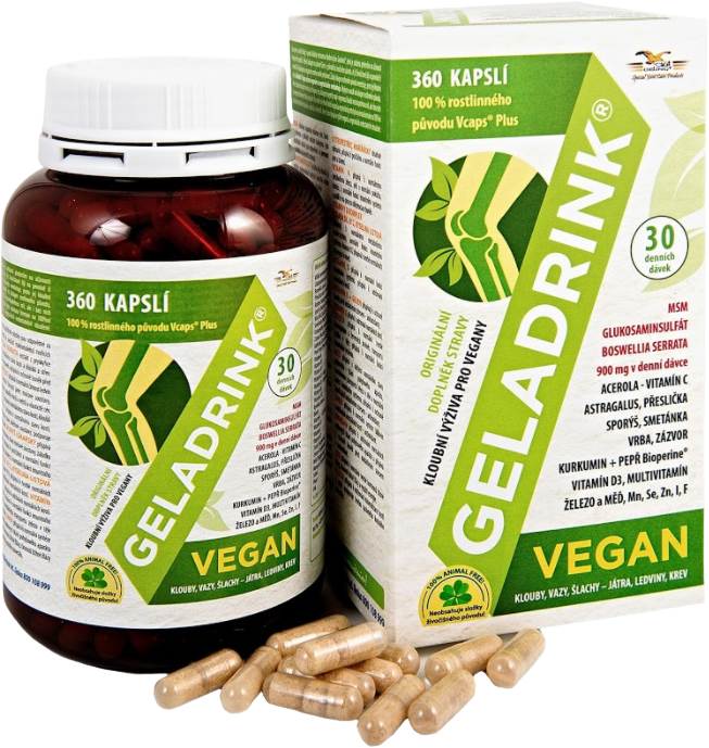 Geladrink® Vegan - doplněk stravy, 30 denních dávek, 360 kapslí, 100 % rostlinného původu.