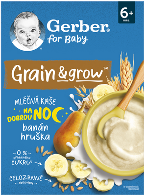 GERBER kaše kombinují vysoké nároky na kvalitu pečlivě vybraných obilovin ovsa a pšenice a jemnou chuť banánových a hruškových vloček pro potěšení všech malých bříšek. Přináší to nejlepší ze světa obilovin a výživy do každé lžičky.