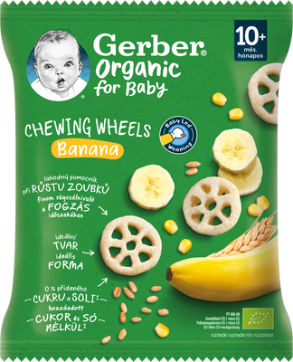 GERBER chewing wheels jsou ideálním pomocníkem v tomto období. Křupavá kolečka jsou speciálně navrženou svačinkou, která podporuje prořezávání prvních zoubků. Za jejich vznikem stojí skupina odborníků v oblasti dětské výživy – můžete si tak být jisti, že svému děťátku dopřejete opravdu to nejlepší.