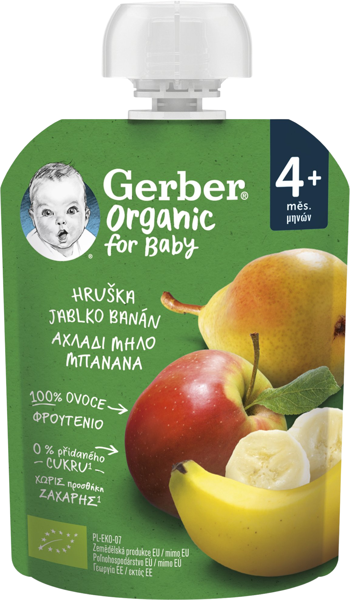 Gerber Organic kapsička hruška, jablko a banán 90 gVše o produktuDoplňující informaceHodnocení produktuS Gerber Organic kapsičkami máte vždy po ruce chutnou svačinku plnou ovoce bez přidaných cukrů*, bez lepku, bez konzervantů** díky níž si váš malý jedlík užije přirozenou chuť ovoce.