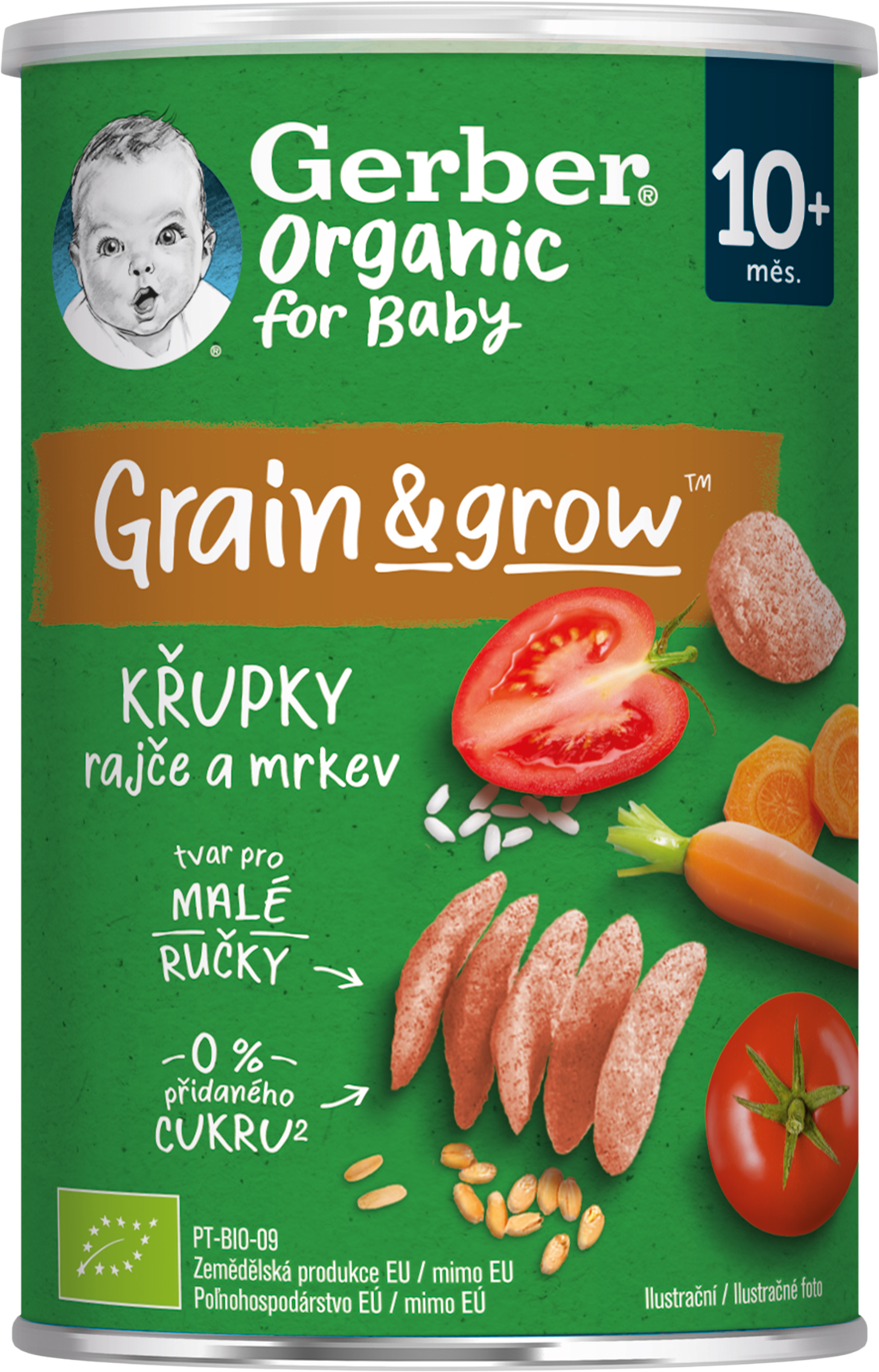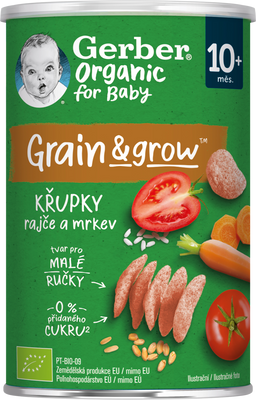 Grain&Grow přináší do ručky vašeho děťátka to nejlepší ze světa obilovin a výživy. Vaše ratolesti si užijí přirozeně lahodnou chuť křupek, které jsou bez přidaných cukrů*, konzervantů a barviv**. Křupky jsou extrudované, díky tomu mají křehkou texturu, která se snadno rozplývá v ústech. Jsou skvělým řešením i jako chutná svačinka pro první zoubky.