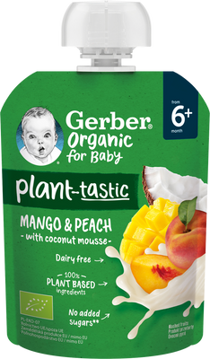Gerber Organic ovocná kapsička mango a broskev s kokosovým mlékem 80 gVše o produktuDoplňující informaceHodnocení produktu