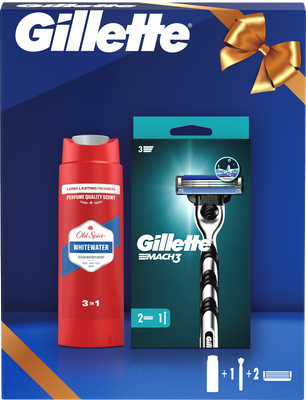 Gillette dárková sada: Gillette Mach3 pánský holicí strojek se 2 náhradními břity + Old Spice Whitewater 3 v 1. Více informací
