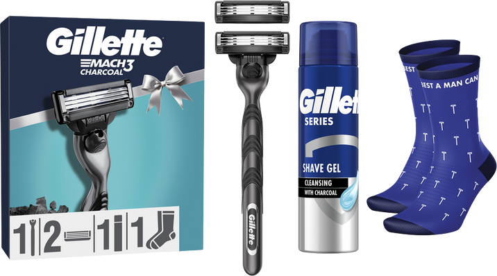 - Obsahuje Gillette Mach3 Charcoal pánský holicí strojek a Gillette Series Charcoal čisticí gel na holení s dřevěným uhlím