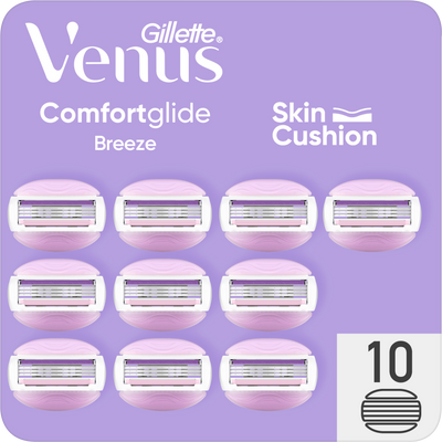 Gillette Venus ComfortGlide Breeze hlavice holicího strojku 10 ksVše o produktuDoplňující informaceHodnocení produktuNáhradní holící hlavice obsahují gelové proužky, které uvolňují tělové mléko se svěží vůní pro pocit pohodlí a hladký skluz po pokožce. S výkyvnou konstrukcí, která se přizpůsobí konturám těla.