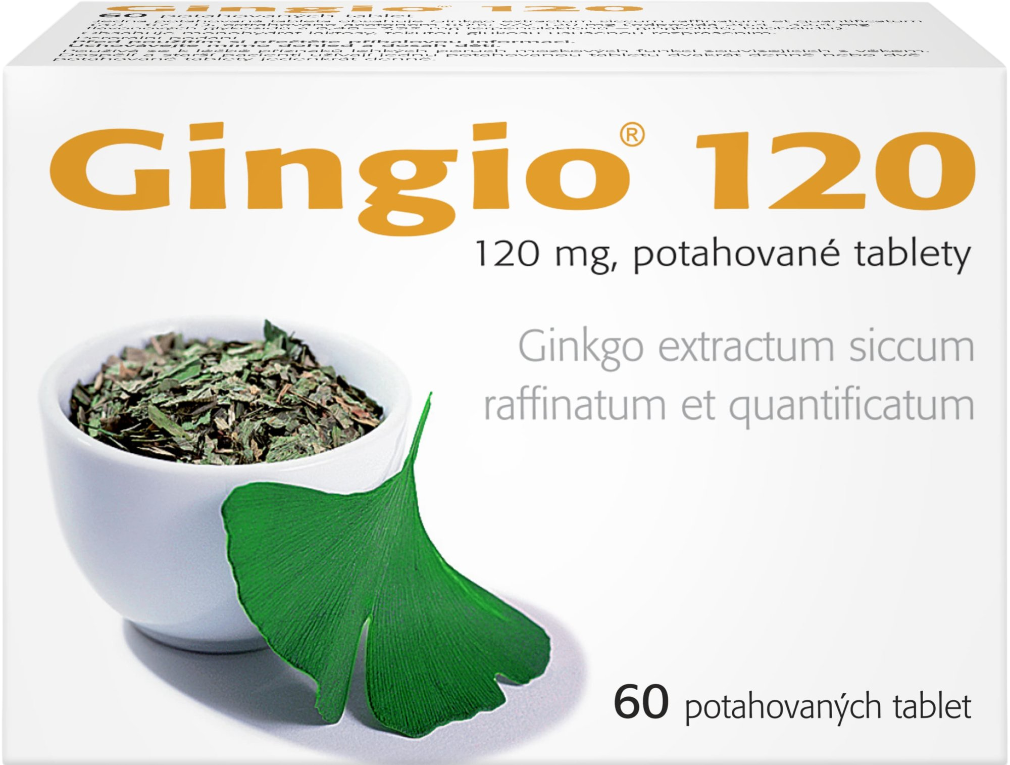 Gingio® potahované tablety, volně prodejný léčivý přípravek k vnitřnímu užití s účinnou látkou suchý, čištěný a kvantifikovaný jinanový extrakt. Čtěte pozorně příbalovou informaci.