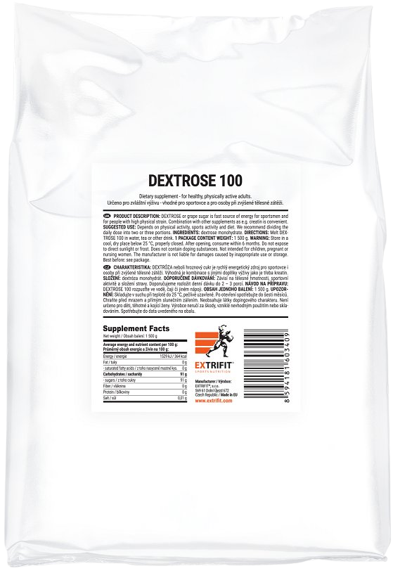 Glukóza a dextróza znamená to samé, a to jednoduchý cukr, známý také jako hroznový cukr. Jde o monosacharid s vysokým glykemickým indexem, který je jeden z nejrychleji vstřebatelných cukrů, a proto je nejvhodnějším zdrojem krátkodobé energie. Rychle vás vzpruží a zažene únavu. Spolu s fruktózou tvoří základní složku běžného cukru. Velkou oblibu má u profesionálních sportovců. Přirozeně se vyskytuje v přírodě, velmi známým zdrojem jsou hrozny, nektar a med. Kulturisti a vrcholoví sportovci využívají dextrózu k dosažení inzulínového maxima a náhradě glykogenu ve svalech, který během cvičení a trénování mizí. Glukóza obsahuje hodně kalorií, proto ji využívají především kulturisti, aby získali váhu a svalovou hmotu. Využívají ji ale i vytrvalostní sportovci nebo osoby, které dodržují nízkotučnou dietní stravu.