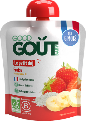 V Good Gout jahodové snídani se o přísun energie postará banán, který chuťově podpoří vyzrálé jahody s kapkou citronu. Tato snídaně představuje ideální zdroj vlákniny.