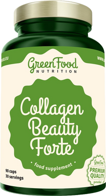 GreenFood Nutrition Collagen Beauty Forte 90 kapslíVše o produktuDoplňující informaceHodnocení produktuEnzymaticky hydrolyzovaný značkový Collagen Viscofan® s vysokou biologickou hodnotou a vstřebatelností. Kolagenové hydrolyzáty (Collagenové peptidy Viscofan®) jsou produkovány ze studenovodních ryb převážně lososů a tresek ve vícestupňovém procesu, který zahrnuje gelatinizaci a následnou enzymatickou hydrolýzu nativního collagenu poskytující peptidy s průměrnou molekulovou hmotností přibližně 3 kDa (SMW). Tak nízké molekulární hmotnosti lze dosáhnout pouze za předpokladu, že jde o hydrolýzu rybího kolagenu za studena. Takto nízká molekulární hmotnost je důležitá pro vstřebatelnost kolagenu. Kolagen je však lidským tělem vstřebáván jen pokud tělo přijímá dostatečné množství vitamínu C, proto Collagen Beauty Forte obsahuje extrakt z Aceroly a vitamín B3.