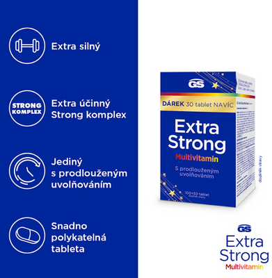 GS Extra Strong Multivitamin je vyvážená kombinace vitaminů, minerálních látek, Activinu, luteinu + echinacey pro podporu imunity. Dárkové balení přináší 30 tablet navíc! Více informací