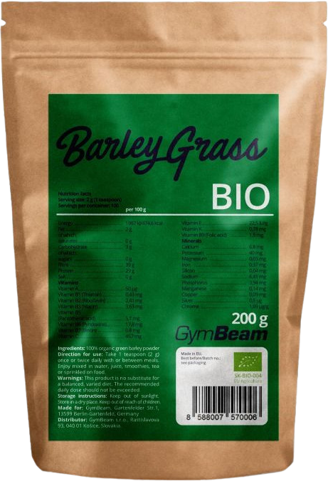 Bio zelený ječmen značky Gymbeam je čistě přírodní produkt bez přidaných barviv, v bio kvalitě. Jde o vysušený mladý ječmen umletý na prášek, který má vysokou výživovou hodnotu. Tato tradiční obilnina je bohatá na zelené barvivo chlorofyl. Zároveň je mladý zelený ječmen zdrojem bílkovin a spektra vitamínů i minerálů. Neobsahuje lepek, a proto je snadno stravitelným doplňkem stravy.