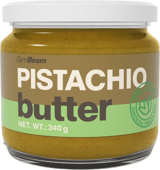 Pistáciové máslo je zdrojem zdravých tuků, vlákniny a bílkovin, kterých obsahuje až 21,2 g na 100 g. Je vyrobeno ze 100% pražených pistácií, díky čemuž má toto oříškové máslo lahodnou chuť a prémiovou kvalitu.