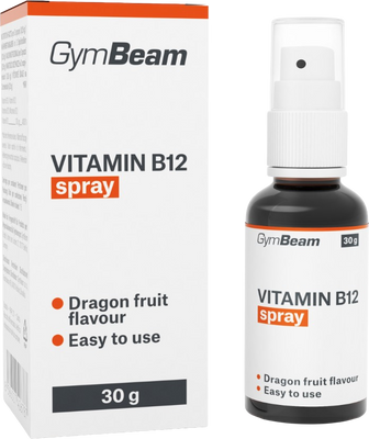 GymBeam Vitamin B12 ve spreji - dračí ovoce 30 gVše o produktuDoplňující informaceHodnocení produktuVitamin B12 ve spreji (methylkobalamin) nabízí praktickou formu, která umožňuje snadnou aplikaci přímo na jazyk. Vitamin B12 přispívá k normální činnosti nervového systému, imunitního systému a psychické funkce. Produkt má příjemnou příchuť dračího ovoce a je vhodný i pro vegany.