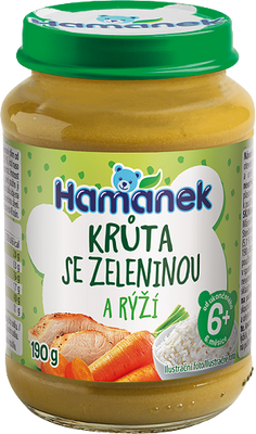 Nedávno jsem vyzkoušela další z řady masovo-zeleninových příkrmů od Hamánka, tuto kombinaci krůty, zeleniny, rýže a jsem opět spokojena. Hlavní předností této produktové řady je cena, což však naštěstí nikterak neubírá na kvalitě. Jednoduchá, avšak vděčná kombinace surovin pro každodenní obědy dítěte.