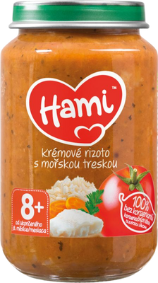 Hami masozeleninový příkrm Krémové rizoto s mořskou treskou, 8+ 200 gVše o produktuDoplňující informaceHodnocení produktuDůraz na nejvyšší kvalitu a bezpečnost surovin!