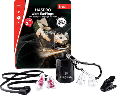Haspro Work - špunty do uší pro práci, kutilství, průmyslová prostředí atd., nabízejí jedno z nejvyšších tržních útlumů v této kategorii, SNR 30dB. Více informací