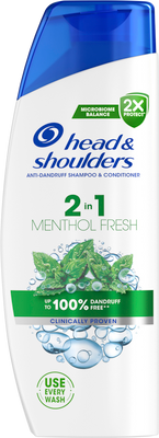 Head & Shoulders Menthol Fresh 2v1, Šampon s kondicionérem proti lupům 330 mlVše o produktuDoplňující informaceHodnocení produktuHead & Shoulders 2in1 Menthol šampon proti lupům pro všechny typy vlasů a všechny typy pokožky hlavy. Působí i proti odolným lupům. Šampon pro každodenní použití pro muže i ženy se složením Microbiome Balance, které se zaměřuje na hlavní příčinu lupů a udržuje vyvážený mikrobiom pokožky hlavy. Působí proti viditelným i neviditelným lupům tím, že uvolňuje 2x více ochranných složek, které se dostávají do pórů a brání návratu odolných lupů. Tento šampon 2v1 obsahuje o 25 % více ošetřujících složek než běžný šampon Head & Shoulders, je klinicky ověřený, dermatologicky testovaný a má vyvážené pH.