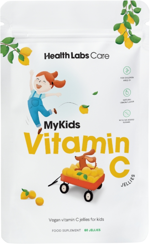 Doplněk stravy pro děti Health Labs Care My Kids Vitamin C ve formě citronových měkkých želatinek pro podporu imunitního systému. Vhodné pro děti od 3 let. Více informací