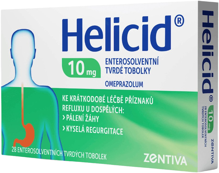 Pálí vás často žáha? Reflux je návrat kyselého obsahu žaludku zpět do jícnu, který se může zanítit a bolet. To může způsobit příznaky, např. bolestivý pocit pálení na hrudi stoupající až do úst (pálení žáhy) a kyselý pocit v ústech (kyselá regurgitace). Přípravek HELICID obsahuje léčivou látku omeprazol, který patří do skupiny léčiv nazývaných „inhibitory protonové pumpy“. Účinkují tak, že snižují množství kyseliny, která se tvoří ve Vašem žaludku.