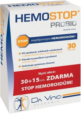 Hemostop Probio MAX Da Vinci Academia 45 tobolekVše o produktuDoplňující informaceHodnocení produktuHemeroidy, hemoroidy