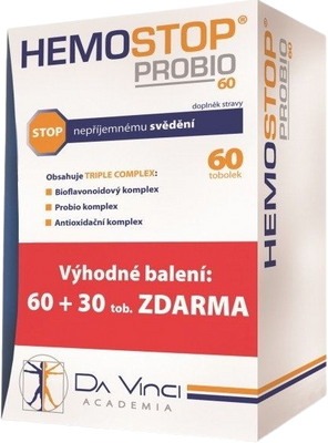 Hemostop Probio MAX je doplněk stravy, jehož hlavními složkami jsou diosmin/hesperidin, dobromysl, probiotika a prebiotika. Přípravek obsahuje dobromysl pro pevné a pružné cévní stěny. Více informací