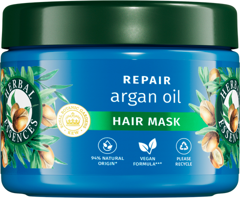 Herbal Essences Argan Oil Repair, Maska na poškozené vlasy 300 mlVše o produktuDoplňující informaceHodnocení produktuObnovující maska na vlasy s arganovým olejem Herbal Essences Argan Oil Repair pomáhá vyživovat velmi suché vlasy. Naše směs rostlinných výživných látek je obohacena o vzácný arganový olej pocházející z ručně sbíraných marockých ořechů, díky čemuž se vyznačuje veganským složením pro hloubkovou hydrataci lámavých vlasů. Naše balení s 25krát koncentrovanějším složením přípravku pro 3denní regenerační bylinnou kúru. Dopřejte si obnovu na přírodní bázi od prvního použití.