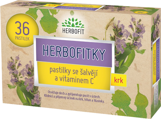 Herbofit Herbofitky se šalvějí a vitamínem C 36 pastilekVše o produktuDoplňující informaceHodnocení produktuVlastnosti: