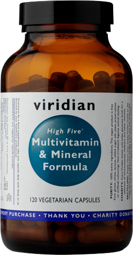 Viridian High Five Multivitamin & Mineral Formula 120 kapslíVše o produktuDoplňující informaceHodnocení produktuKvalitní směs vitamínů, minerálů a rostlinných extraktů.