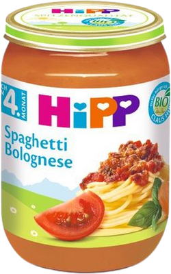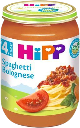 BIO masozeleninový příkrm HiPP BIO Boloňské špagety pro děti od ukončeného 4. měsíce.