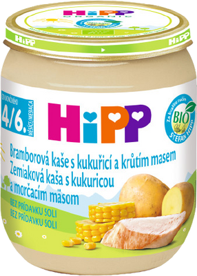 HiPP BIO Bramborová kaše s kukuřicí a krůtím masem 125 gVše o produktuDoplňující informaceHodnocení produktu