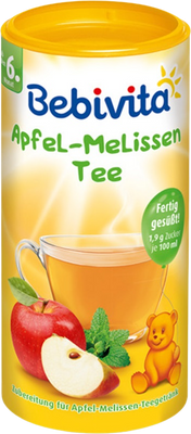 Bebivita čaj instantní jablko & meduňka je vhodný k doplnění pitného režimu kojenců a malých dětí v období přikrmování. Má jemnou osvěžující chuť, je dobře stravitelný a pro děti velmi prospěšný. Pro děti od 6. měísce (od ukončeného 5. měsíce.) Více informací
