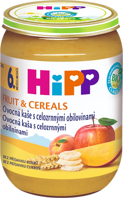 Fruit & Cereals Ovocná kaše s celozrnnými obilovinami je ovocno-obilný příkrm v BIO kvalitě vhodný pro děti od 6. měsíce. Více informací
