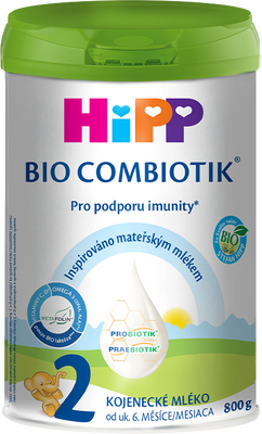 HiPP Pokračovací mléčná kojenecká výživa 2 BIO Combiotik® dóza 800 gVše o produktuDoplňující informaceHodnocení produktuHiPP BIO Combiotik® je nejnovější generace mléčné výživy přizpůsobená výživovým požadavkům Vašeho dítěte s pečlivě vybranými BIO surovinami a s unikátní kombinací hodnotných složek inspirovaných mateřským mlékem. Její složení je založeno na posledních výsledcích výživových expertů. Již více než 50 let věnujeme veškeré úsilí a zkušenosti do výroby mléčné výživy připravované tak, aby Vaše dítě dostávalo přesně to, co potřebuje pro zdravý vývoj. Přísné kontroly kvality - od prvních surovin až po konečný výrobek - zaručují nejvyšší bezpečnost pro Vás i Vaše dítě.